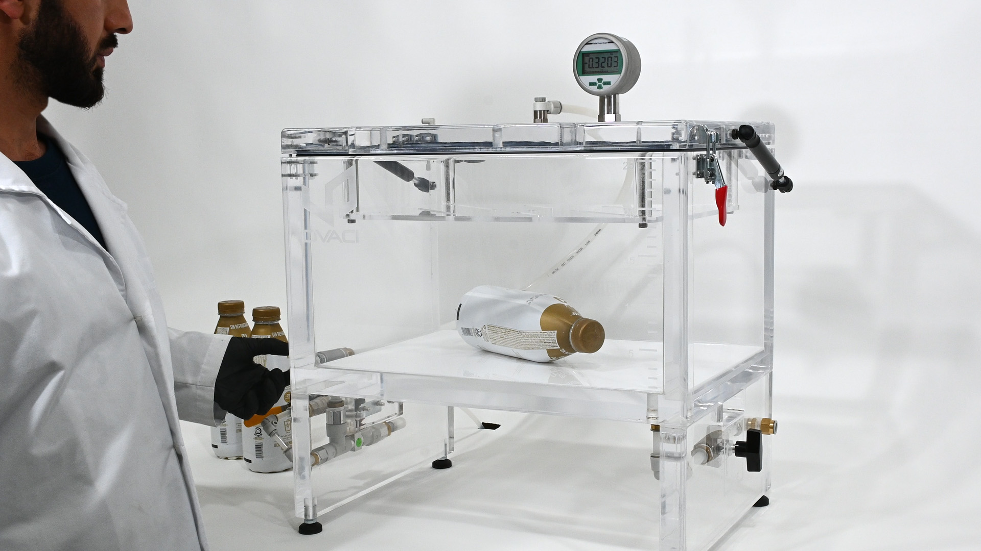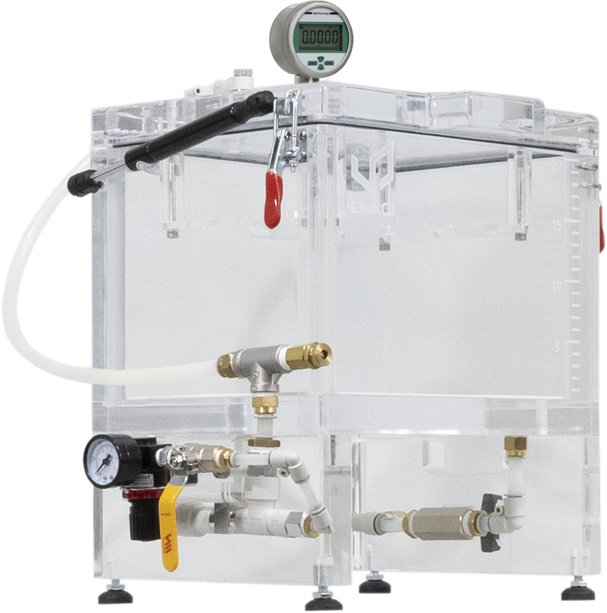 This system allows you to perform leak tests in accordance with standards such as ASTM D3078, as well as other methods that require testing in a vacuum chamber.