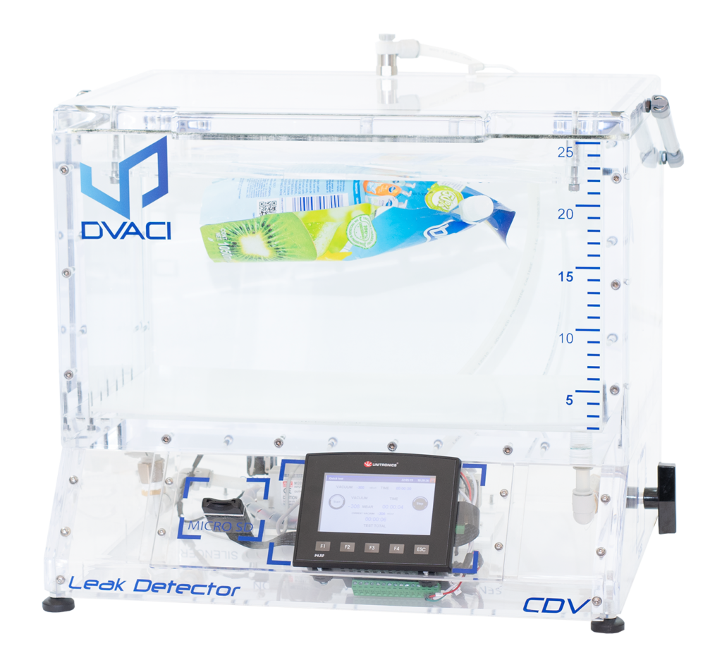 Un instrumento de detección de fugas diseñado para pruebas farmacéuticas con el Método de Prueba del Colorante Azul de Metileno, una prueba utilizada principalmente para el ensayo de empaques tipo blíster.