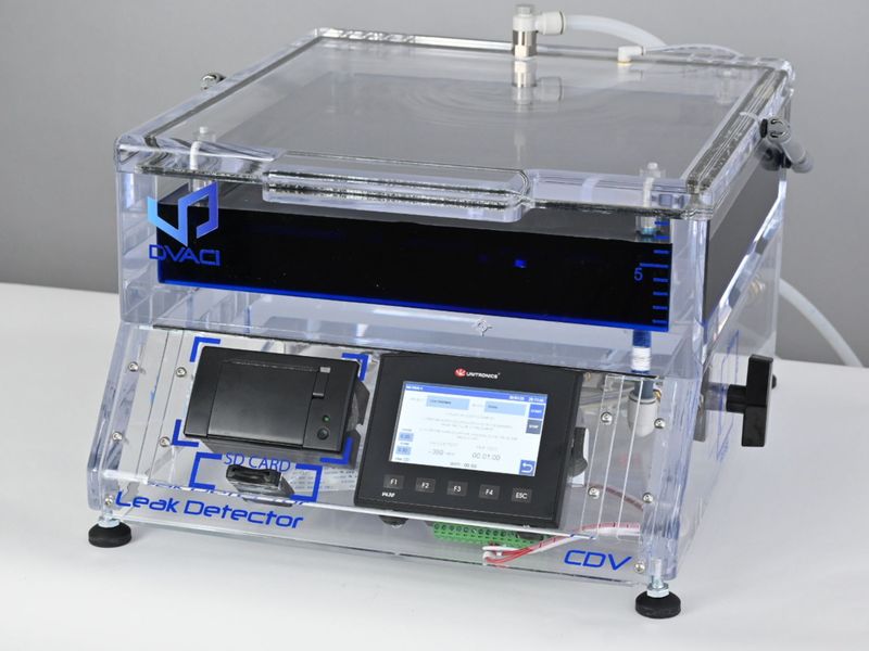 Un instrument de détection de fuites conçu pour vérifier l’étanchéité des produits pharmaceutiques avec la méthode de test au bleu de méthylène, un test principalement utilisé pour vérifier l’étanchéité des blisters.