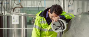 tired fatigue exhaustion engineer worker hard working in factory. worker sick from Corona virus flu. julien2021-10-06T21:02:48+00:00